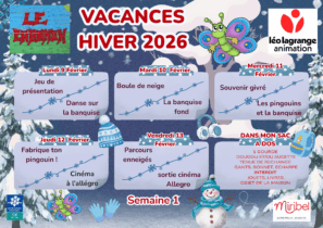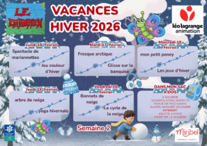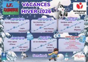 Plannings des vacances d’Hiver 2026 Publication publiée :23 janvier 2026 Post category:Activités/Evènements / Divers / Plaquettes Plannings des papillons Plannings des lapins Plannings des renards Nous vous souhaitons d’excellentes vacances d’Hiver 2026