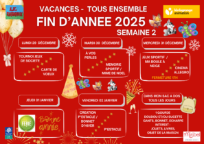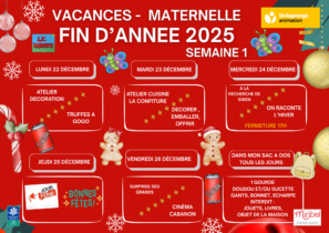 programme vacances fin d’année 2025 Publication publiée :19 décembre 2025 Post category:Divers Planning papillons 1ère semaine Planning lapins / renards 1ère semaine Planning papillons / lapins / renards 2ème semaine Toute l’équipe du Cabanon vous souhaite d’excellentes fêtes de fin d’année